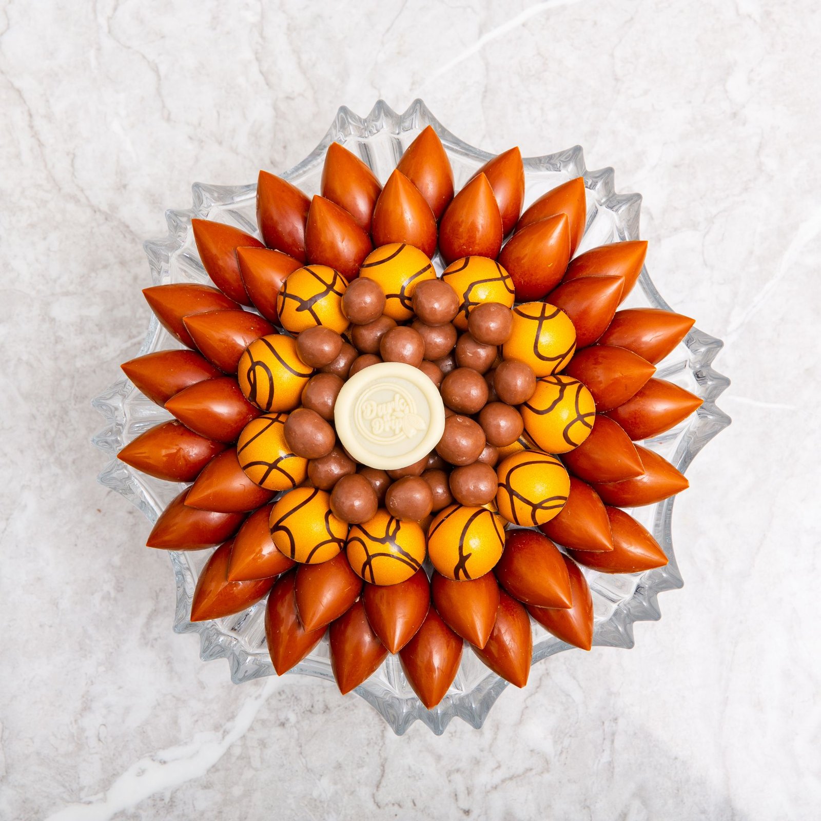 Dulcey de leches caramel , hazelnut cream spheres & hazelnut chocolate dragees.